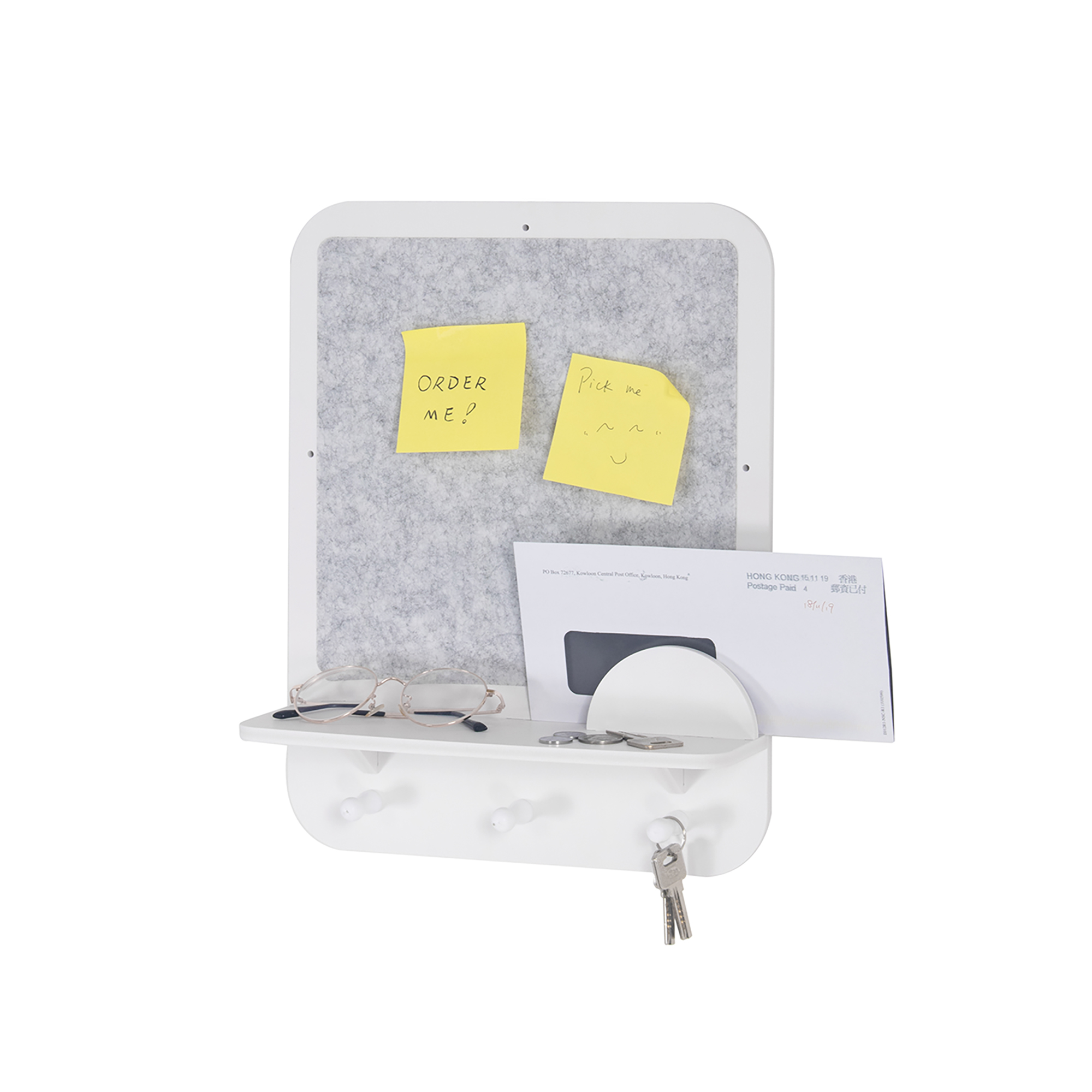 Wall Mounted Shelves with Felt Board and Hooks