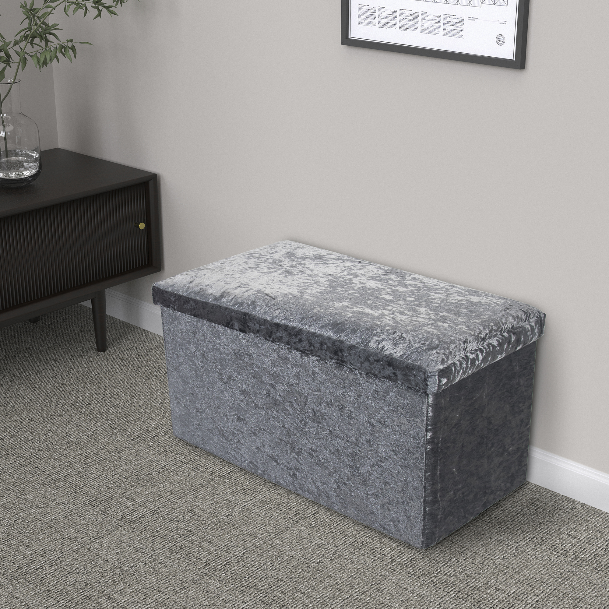 A classic Ottoman that with ample storage space inside. Assembled in seconds, covered in a luxurious polyester velvet fabric