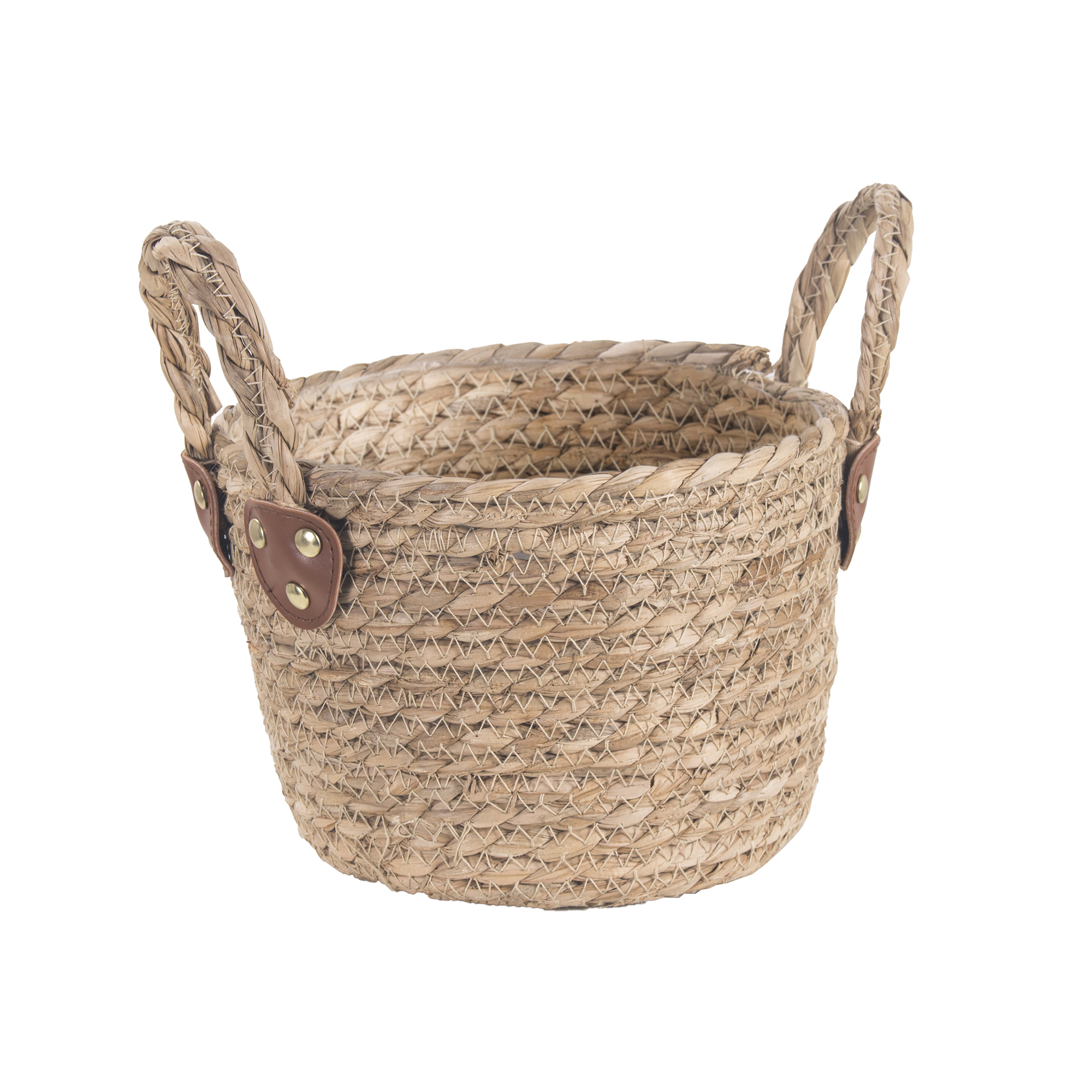 Made of woven cattail reeds. Use to carry items such as books, toiletries, washcloths, knitting supplies and more.Sturdy weave with double handles for easy carrying